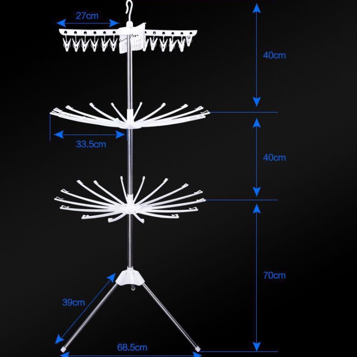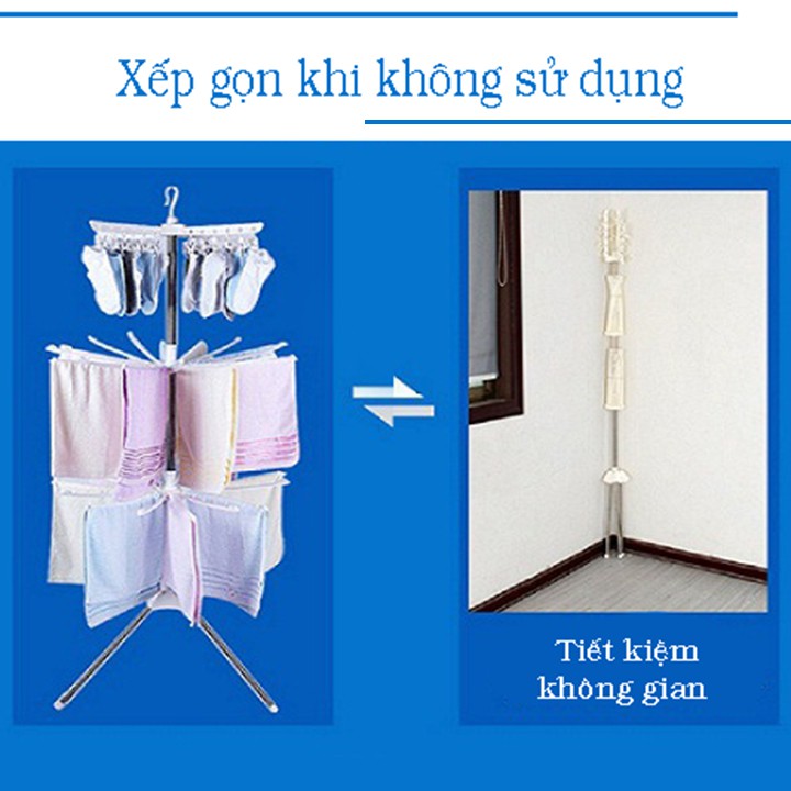 🍀🍀CÂU PHƠI QUẦN ÁO INOX XOAY 360 ĐỘ 56 KẸP🍀🍀Cây phơi quần inox 3 tầng