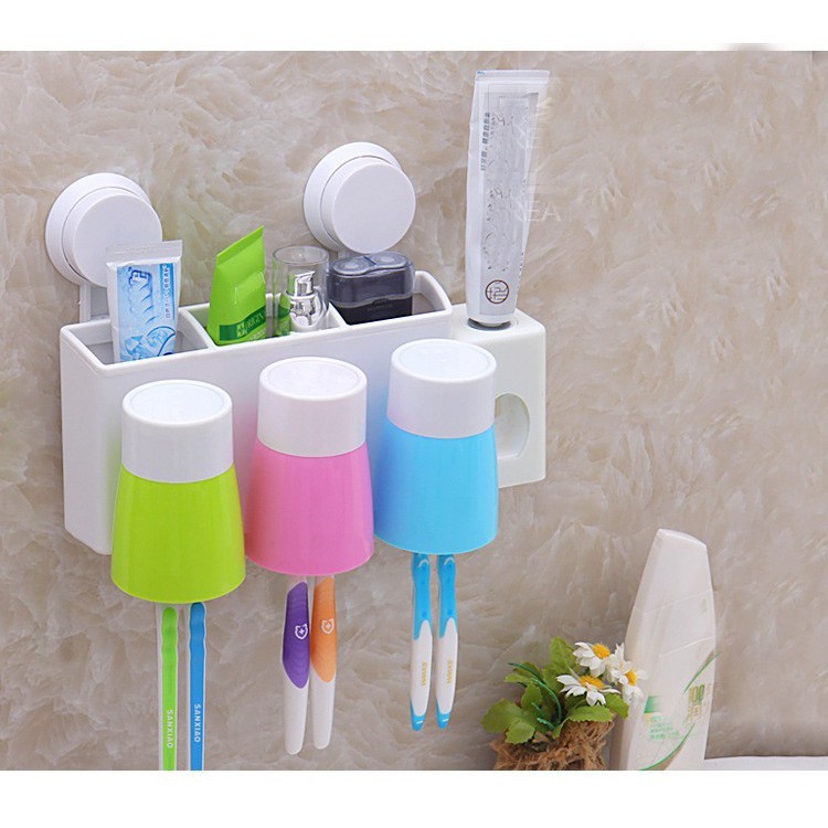 Nhà cửa & Đời sống > Đồ dùng phòng tắm > Kệ đựng bàn chải, kệ nhả kem đánh răng || [TIỆN ÍCH THÔNG MINH] Bộ nhả kèm đánh răng tự động kèm giá gác bàn chải và 3 cốcCòn hàng