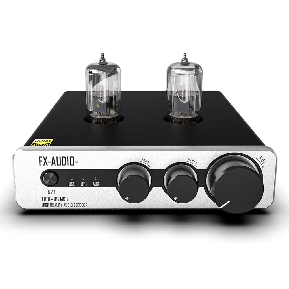 FX-Audio TUBE-06 MKII là một bộ Amply đèn giá cả phải chăng và hiệu quả. Giai đoạn tiền khuếch đại của nó dựa trên việc sử dụng một cặp bóng 6N3. Nó được liên kết với phần chuyển đổi kỹ thuật số / tương tự sử dụng chip DAC ESS ES9018K2M, giao diện USB CM6642 hoặc các thành phần chất lượng khác như NE5532 và OPA2134 AOs. Do đó, nó có khả năng phục hồi âm nhạc và ấm áp. Nó cũng hỗ trợ các luồng âm thanh lên đến PCM 24bit 192kHz.