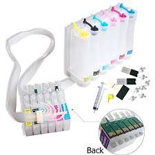 Bộ tiếp mực ngoài máy in epson T50 bao gồm 2 bộ phận chính: bình chứa mực bên ngoài, các tép mực bên trong để nắp vào đầu in bao gồm 6 màu xanh, xanh nhạt, đỏ, đỏ nhạt, đen, vàng,đây là 6 màu cơ bản của máy in epson T50 sử dụng.Bộ tiếp mực bao gồm 6 cartridge được nối với 6 hộp mực rời ở ngoài.
