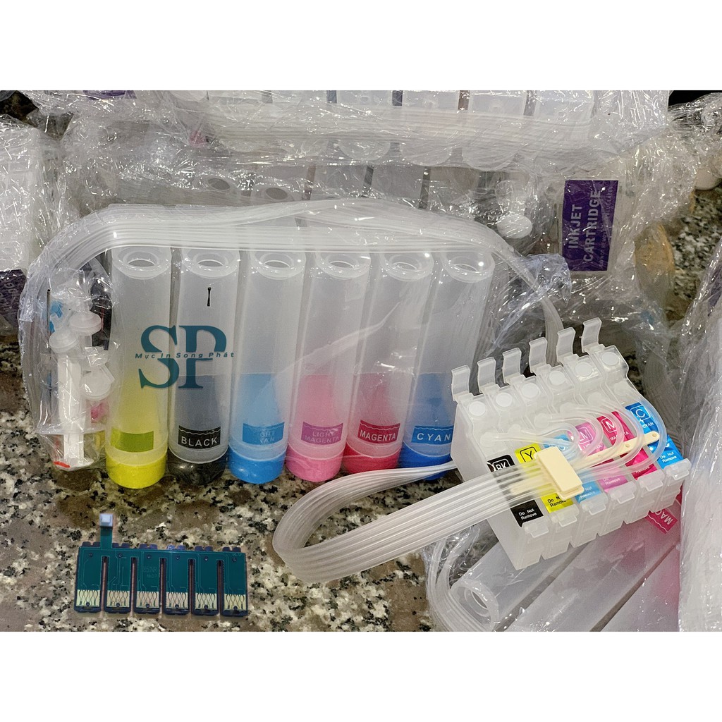 Bộ tiếp mực bao gồm 6 cartridge được nối với 6 hộp mực rời ở ngoài.
