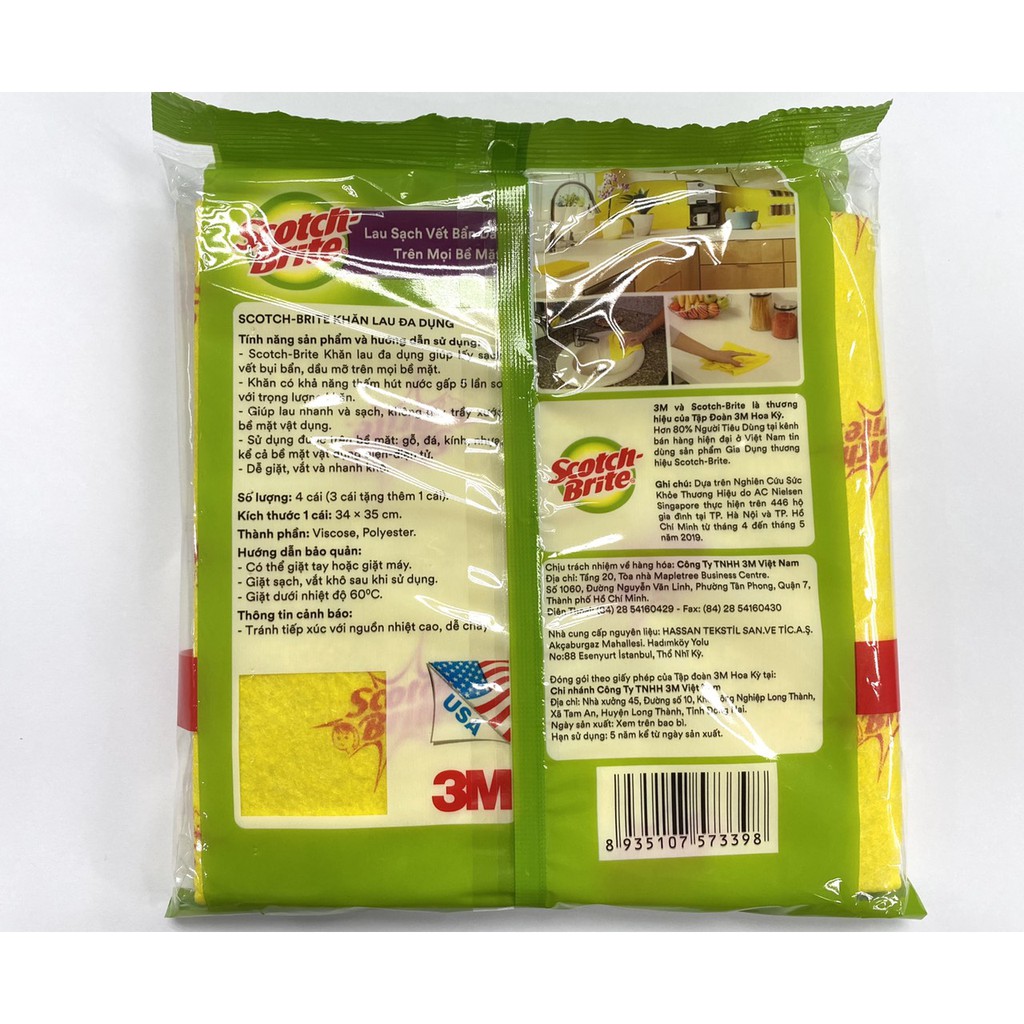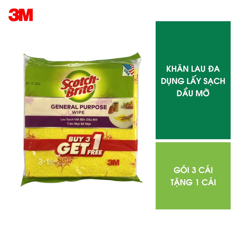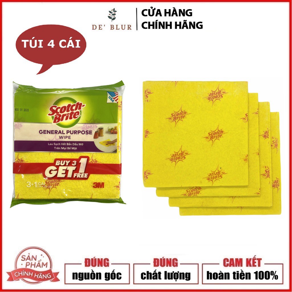 - Gói 4 cái khăn lau đa dụng không trầy xước 34x35cm Scotch-Brite 3M là sự lựa chọn tối ưu cho việc lau sạch vết bẩn không gây trầy xước.