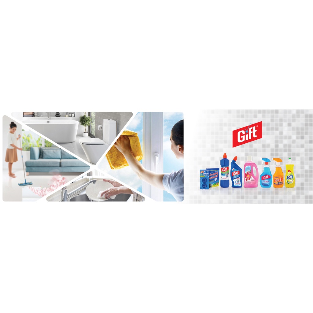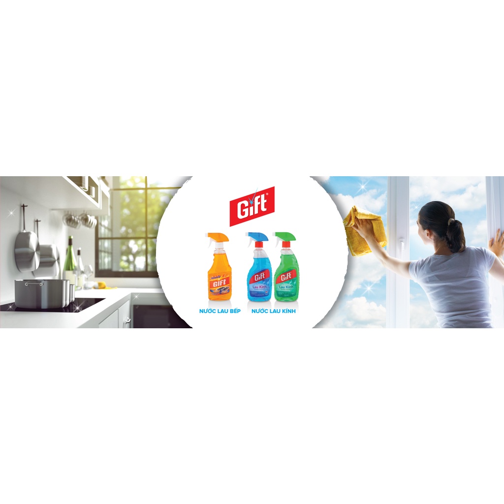 Nước Lau Kính Gift Sắc Biển Tươi Mát với công thức thế hệ mới, giúp lau sáng bóng các bề mặt kính, đặc biệt không để lại vệt sọc và hạn chế bám bụi, khử mùi hiệu quả và đồng thời lưu lại hương thơm tươi mát cho không gian nhà bạn.