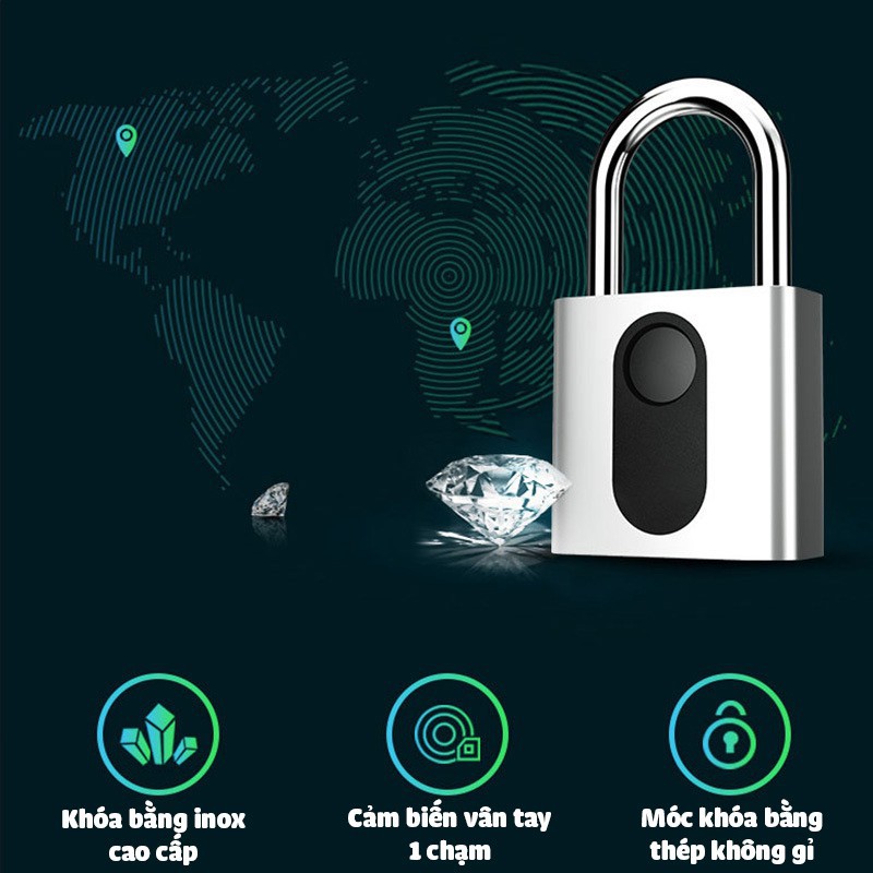 [MÓN QUÀ Ý NGHĨA] Khóa Vân Tay Không Chìa, Bền, Bảo Mật, An Toàn Chống Trộm,Chống Nước✔ Sử dụng cảm biến vân tay 1 chạm mới nhất
