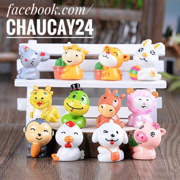 Tiểu cảnh - Bộ 12 con giáp phụ kiện trang trí terrarium, sen đá, xương rồng, charm slime, chậu cây