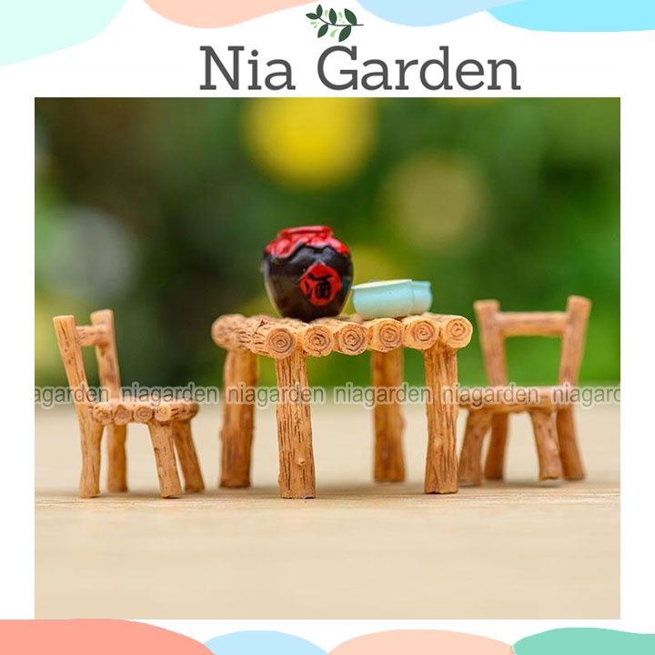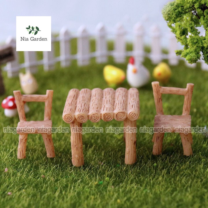 Tiểu cảnh bộ bàn ghế mini làm mô hình trang trí decor chậu cây vườn terrarium hồ cá Nia Garden N5