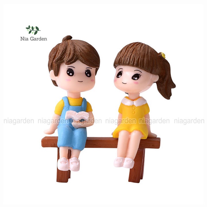 Nhà cửa & Đời sống > Làm vườn > Trang trí vườn || Tiểu cảnh cặp đôi học sinh ngồi ghế tượng mini trang trí vườn chậu cây terarium hồ cá Nia Garden N5Còn hàng