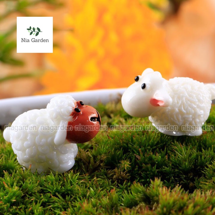 Tiểu cảnh cừu trắng làm mô hình trang trí chậu cây vườn terrarium bể cá mini Nia Garden N5