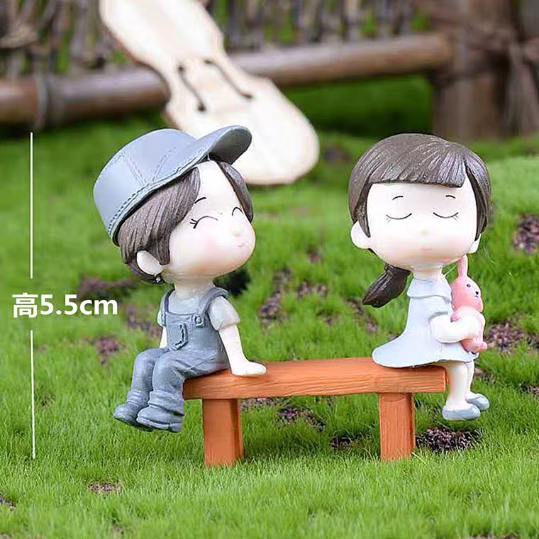 Nhà cửa & Đời sống > Làm vườn > Trang trí vườn || Tiểu cảnh đôi trai gái ngồi ghế [Bao gồm ghế] trang trí terrarium, charm slime, cây cảnh mini, cây để bànCòn hàng