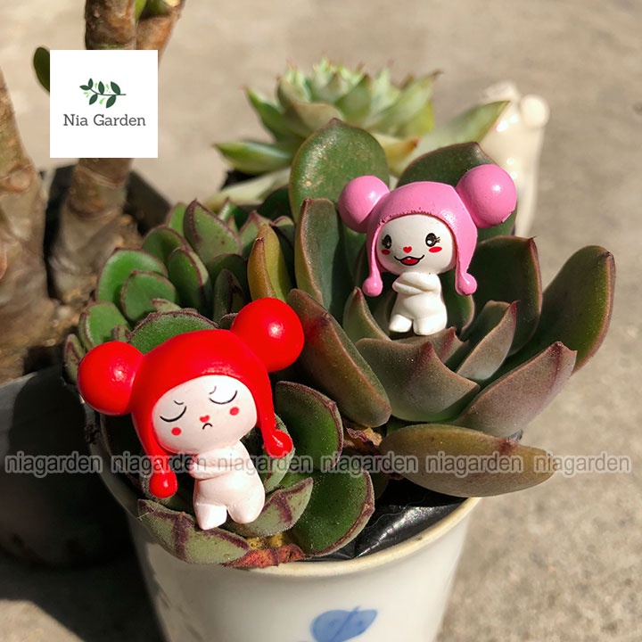 Tiểu cảnh em bé nón len tượng mini trang trí vườn chậu cây terarium hồ cá Nia Garden N5