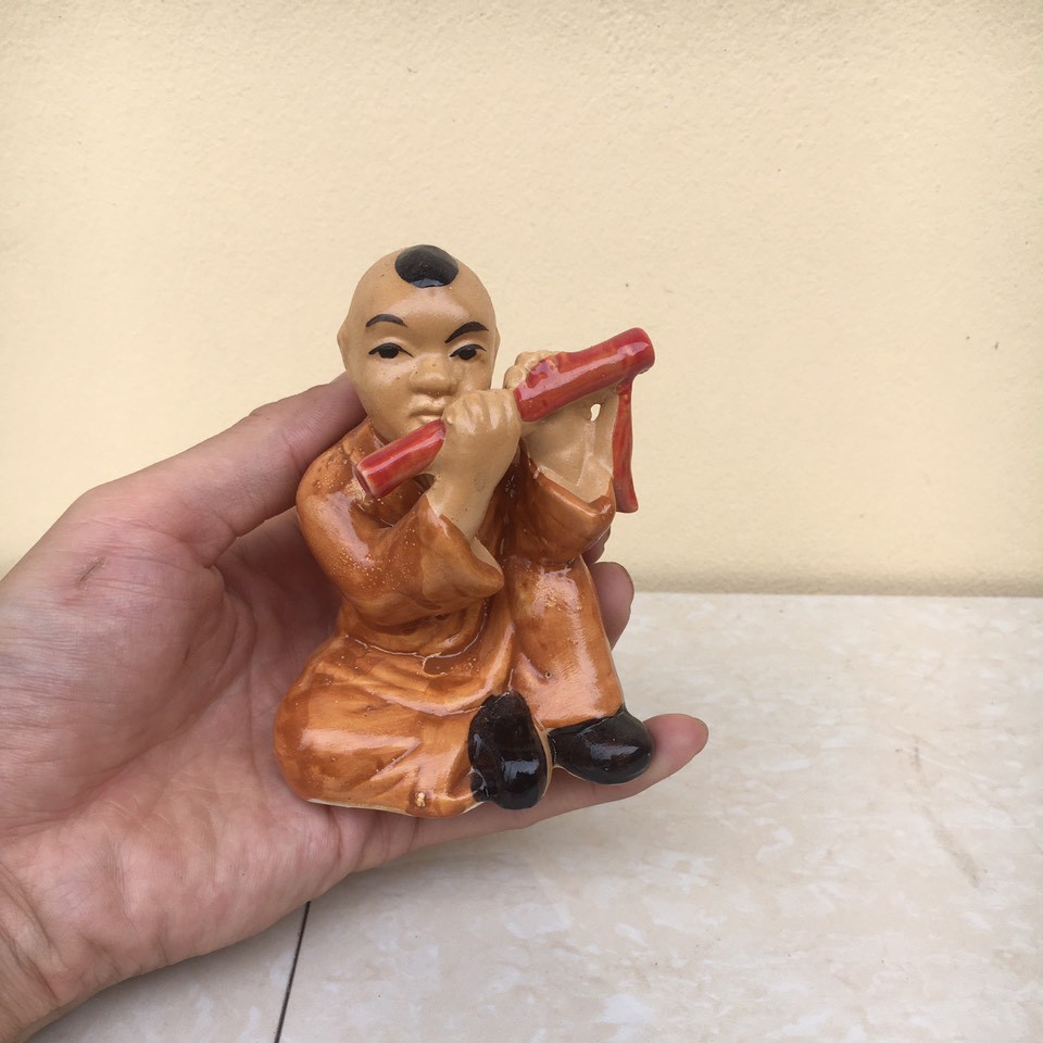 Giới thiệu Tiểu cảnh Em bé thổi sáo mini gốm Bát tràng 1 size TC-06