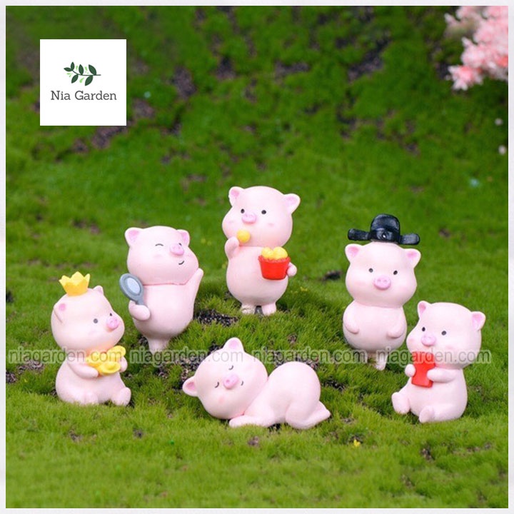 Tiểu cảnh heo dễ thương mô hình mini trang trí chậu cây nhỏ sen đá xương rồng terrarium Nia Garden N5
