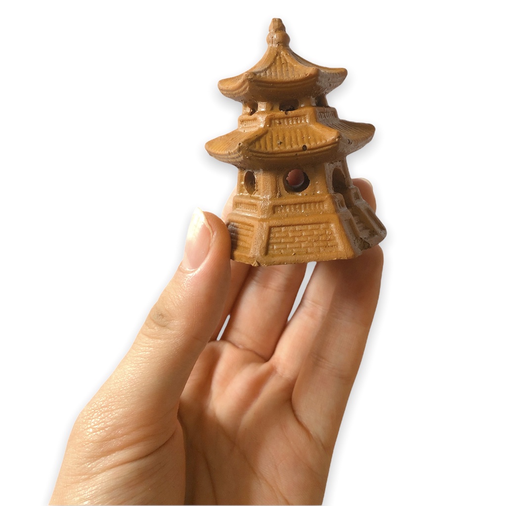 [Tiểu Cảnh] Lầu Đa Giác Đen 2 Tầng Size 5x6 Dùng Trang Trí Hồ Cá
