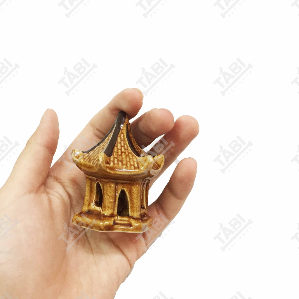 Giới thiệu [Tiểu Cảnh] Lầu Mái Cong Tráng Men Nhí Size 4.5x6 Dùng Trang Trí Hồ Cá