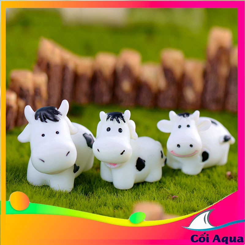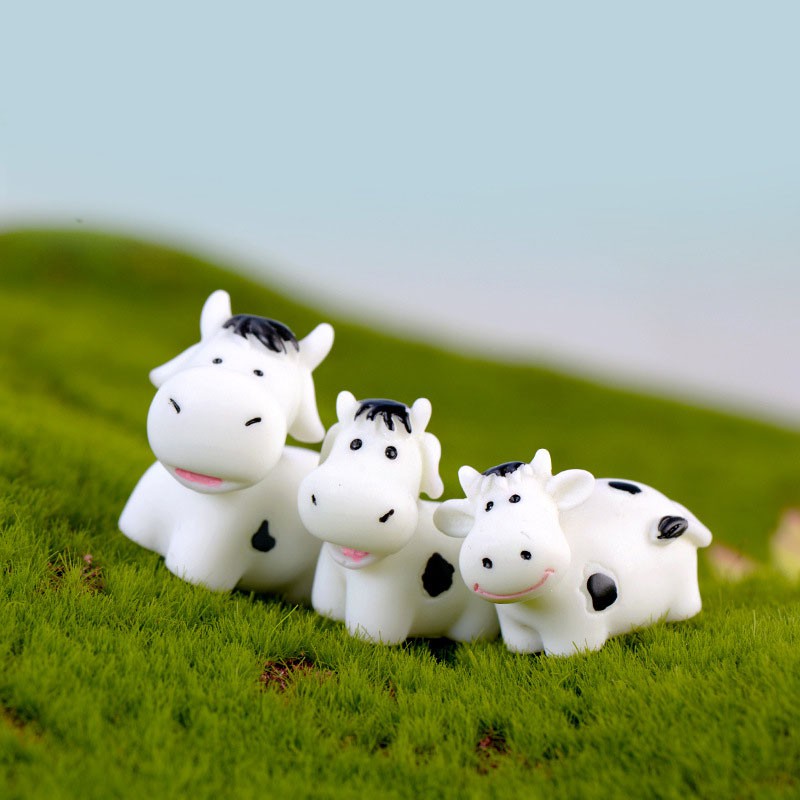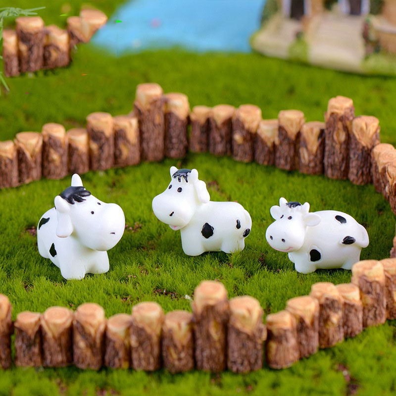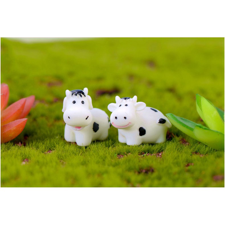 Tiểu cảnh mini ❤️ Bò sữa trắng đáng yêu trang trí tiểu cảnh sen đá, sân vườn, bể cá, bể terrarium