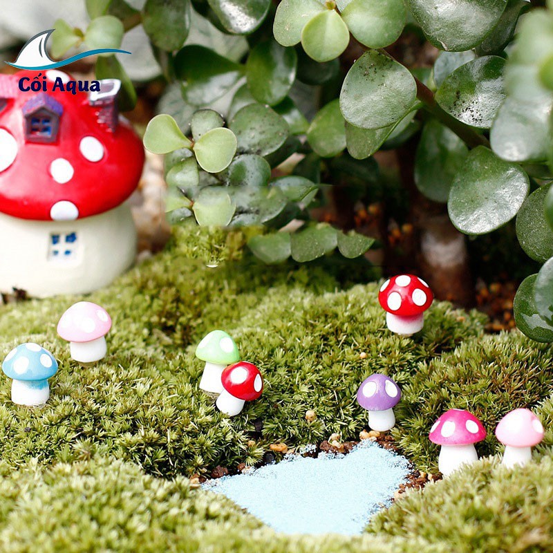 Tiểu cảnh mini ❤️ Cây nấm mini nhiều màu sắc dùng trang trí tiểu cảnh sen đá, sân vườn, bể cá, bể terrarium