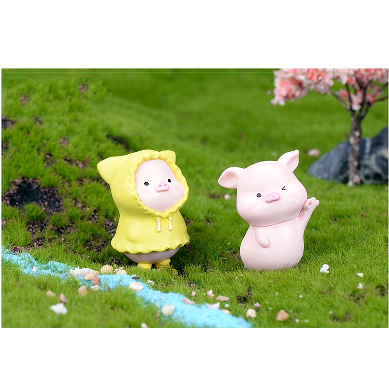 Tiểu cảnh mini ❤️ Mô hình 06 lợn hồng áo vàng đáng yêu trang trí tiểu cảnh sen đá, sân vườn, terrarium