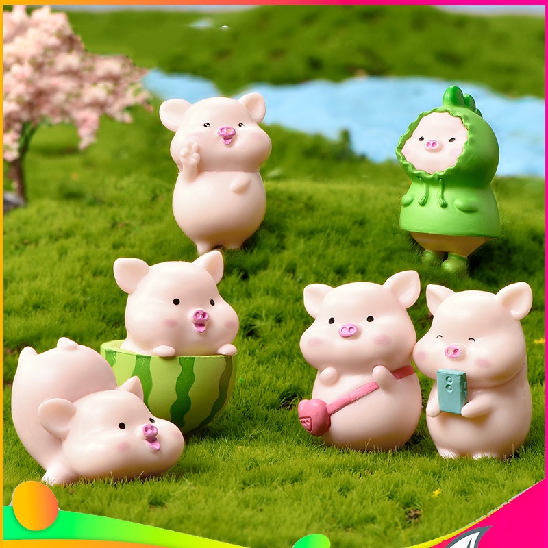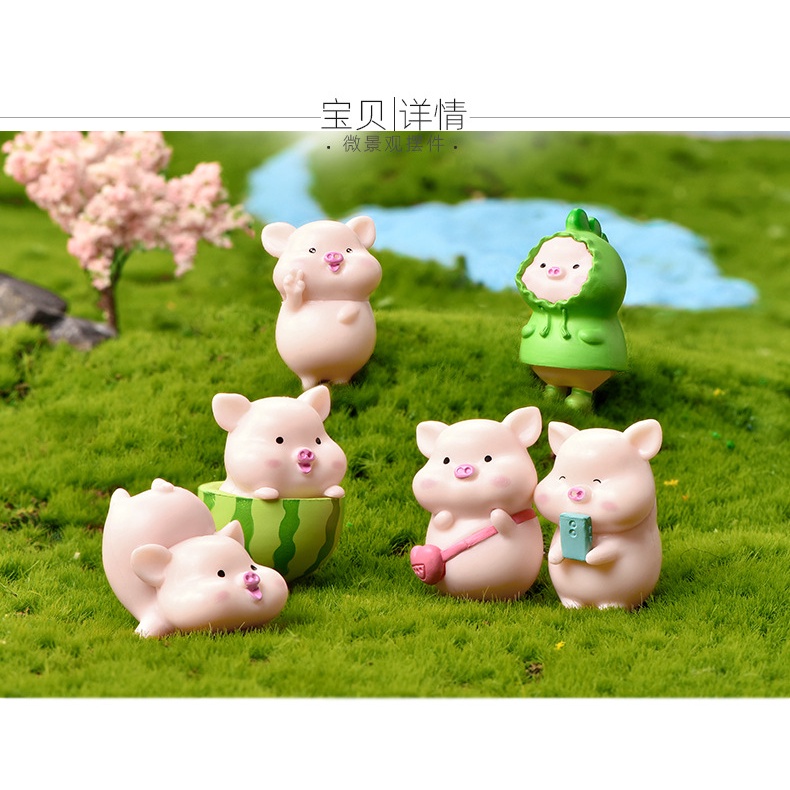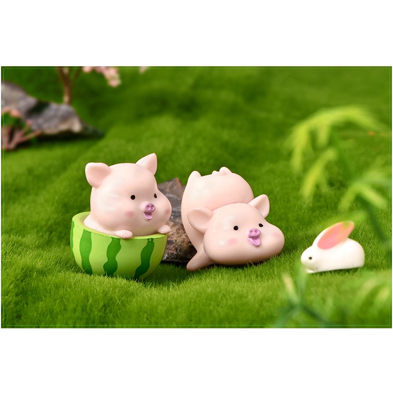 Nhà cửa & Đời sống > Làm vườn > Trang trí vườn || Tiểu cảnh mini ❤️ Mô hình 07 lợn hồng áo xanh đáng yêu vui chơi dưa trang trí tiểu cảnh sen đá, sân vườn, terrariumCòn hàng
