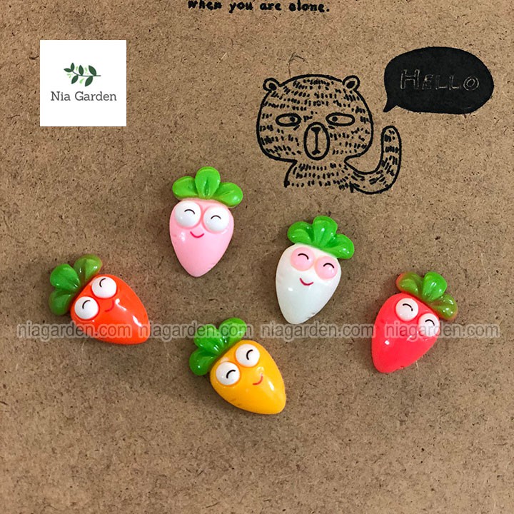 Tiểu cảnh mini mô hình cà rốt mặt cười trang trí chậu cây sen đá vườn bể cá Nia Garden