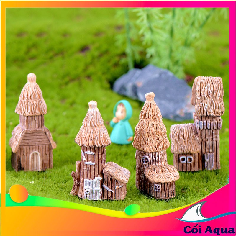 Mô hình tiểu cảnh mini ❤️ Mô hình Lâu đài cổ, nhà cổ, ngôi nhà tranh trang trí sen đá, sân vườn, bể cá, bể terrarium
