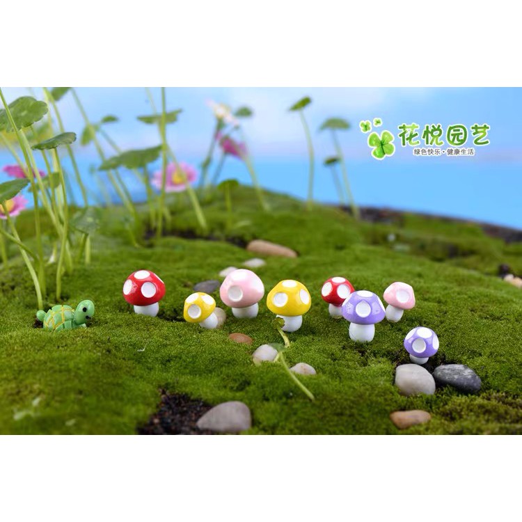 Tiểu cảnh nấm mini trang trí sen đá, xương rồng, terrarium, charm slime, cây cảnh mini, cây để bàn, đồ trang trí