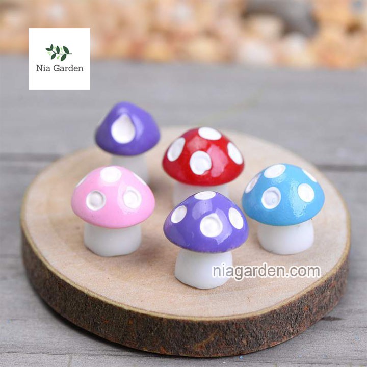 Tiểu cảnh nấm rơm màu trang trí chậu cây vườn terrarium bể cá Nia Garden N5