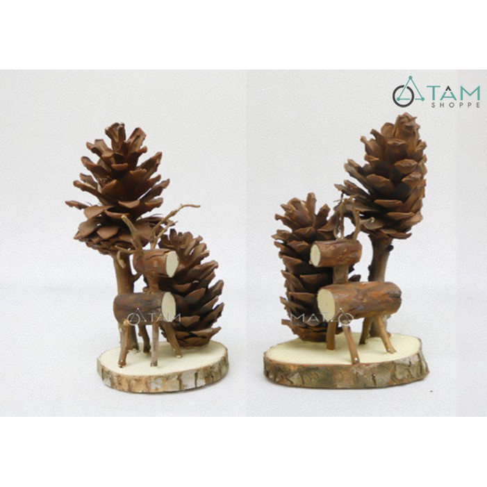Giới thiệu Bộ tiểu cảnh Noel handmade tuần lộc 2 thông X-TCANH-05