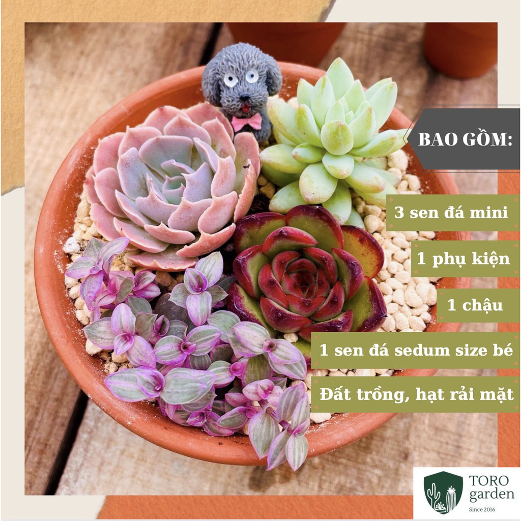 Set tiểu cảnh sen đá random siêu đáng yêu dành cho các bạn mê sen đá bao gồm:• 3 cây sen đá mini 2,5-4cm ngẫu nhiên
