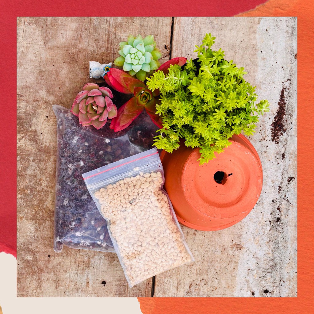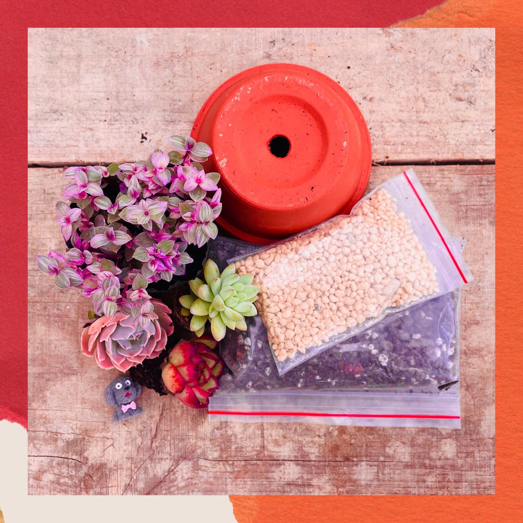 • Chậu: bạn có thể dùng bất cứ loại chậu nào nếu không có lỗ thoát nước thì bạn tưới sẽ ít hơn thường chút là được 😁
