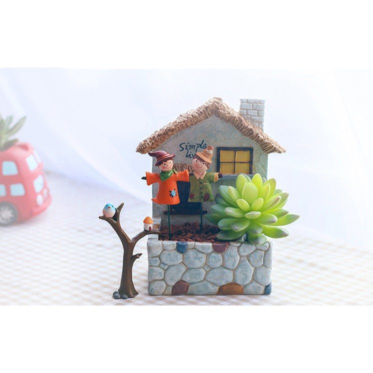 Tiểu cảnh sen đá mô hình người rơm trang trí terrarium, chậu cây
