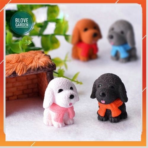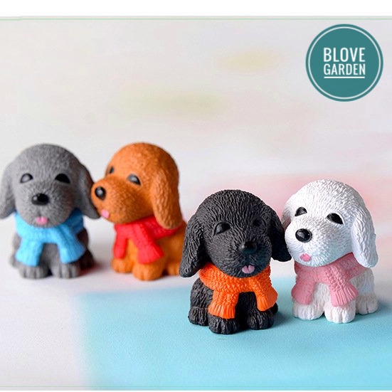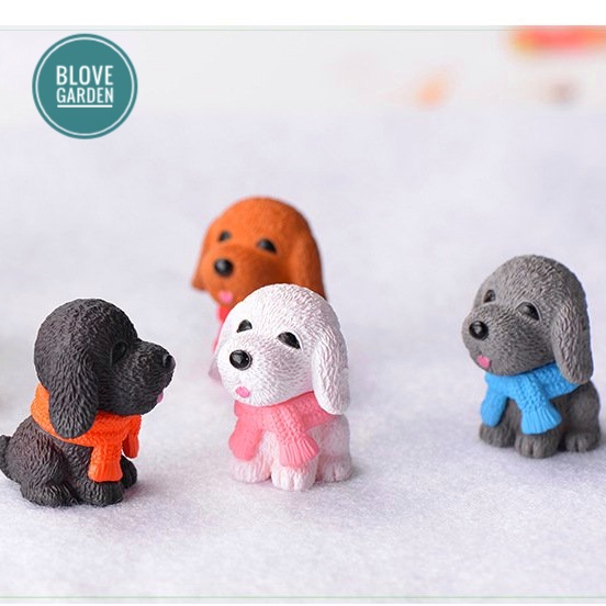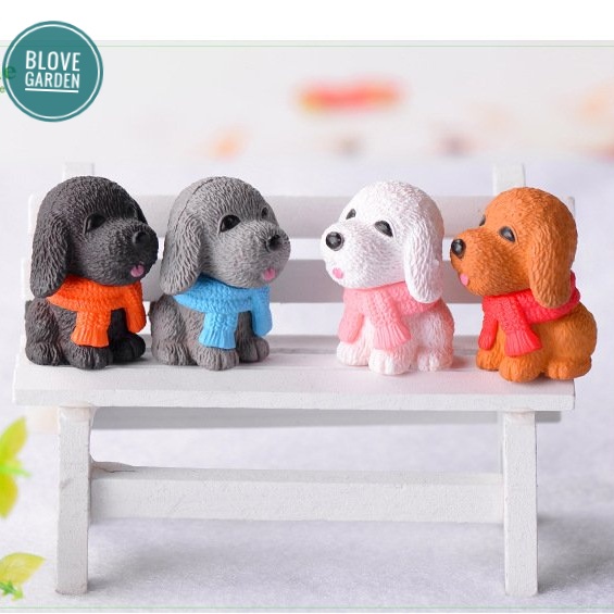 Tiểu cảnh trang trí- Chú Cún Choàng Khăn nhiều màu Trang Trí Chậu Cây, Sen Đá, Cây Cảnh Bonsai,cây cảnh để bàn