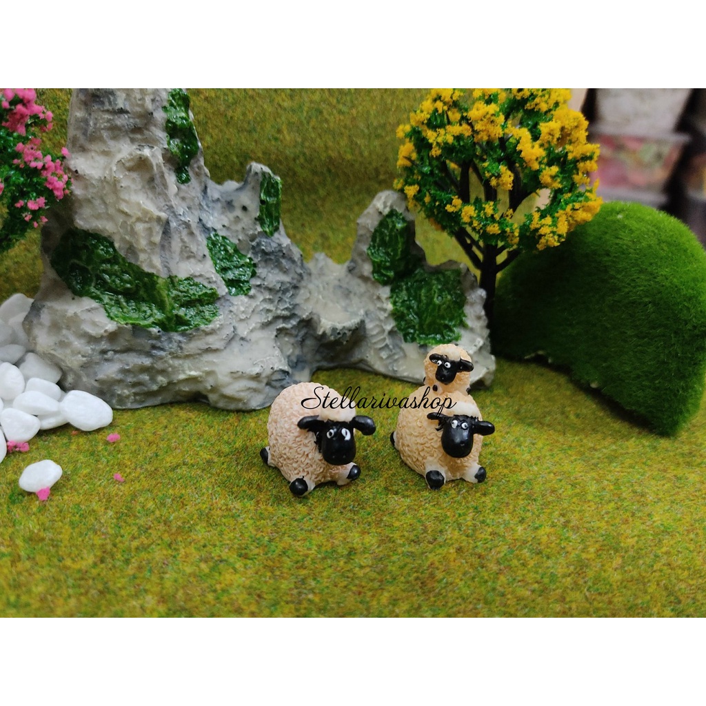 Mô hình cừu cõng con trang trí terrarium , chậu sen đáSize : 3.5CM * 2CM