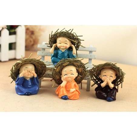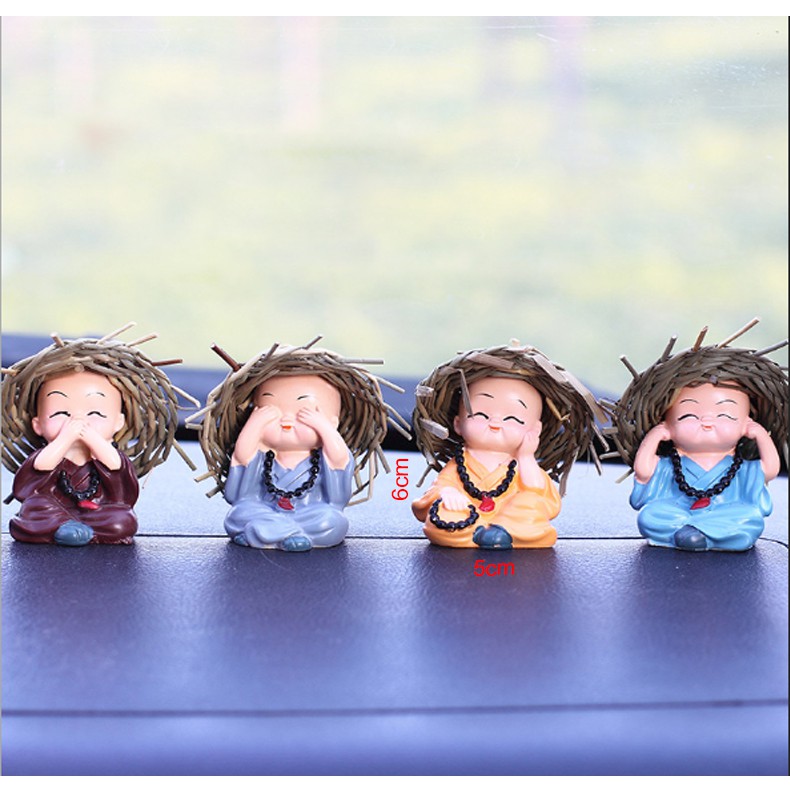 Chú tiểu đội nón, chú tiểu 4 không - Phụ kiện trang trí tiểu cảnh sen đá, xương rồng, bàn làm việc, ô tô