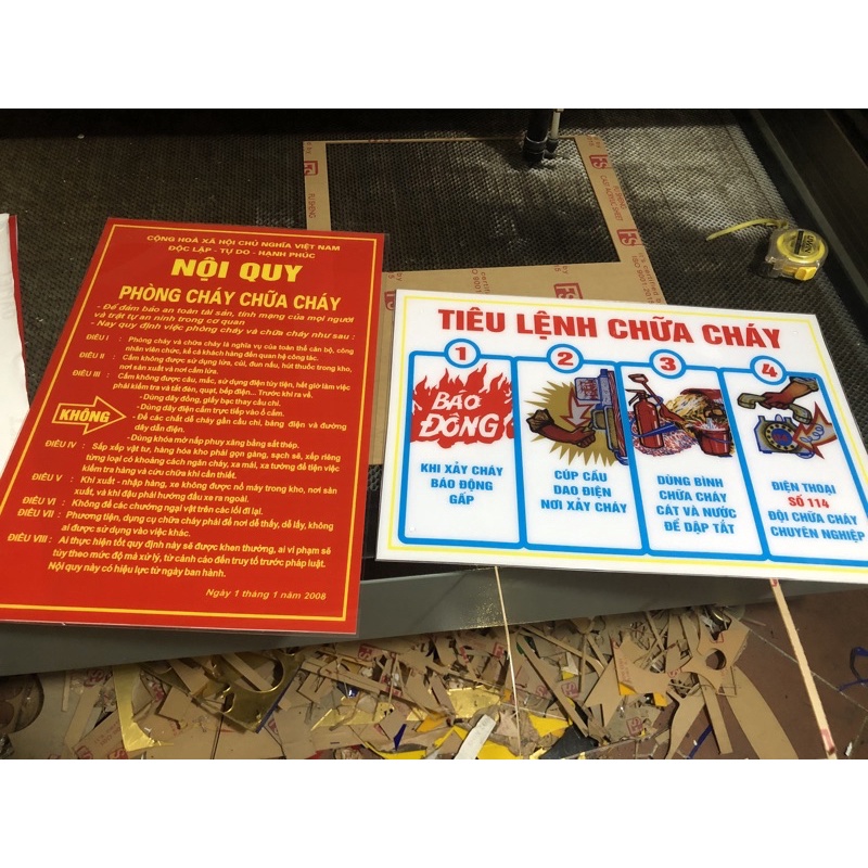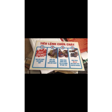 Bộ tiêu lệnh pccc và nội quy pccc làm bằng chất liệu mica độ dày 1.2mm, được đặt ở nơi đông người qua lại như trường học, dãy trọ, xí nghiệp, công ty,... nhằm cảnh báo khi có trường hợp cháy nổ,...hoặc khi có cơ quan có thẩm quyền kiểm tra.Đặt số lượng lớn vui lòng chat với shop để được giá tốt hơn.