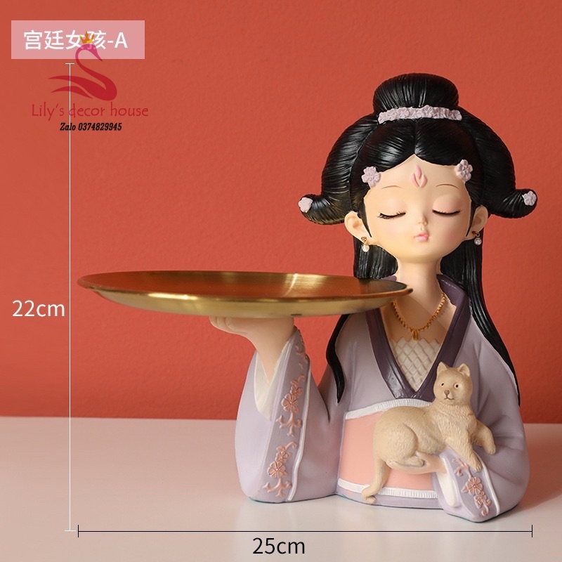 Thông tin sản phẩm: Tượng Cô gái Trung Hoa kèm khay đựng đồ xinh xắn tiện dụngKích thước sản phẩm: cao 22cm