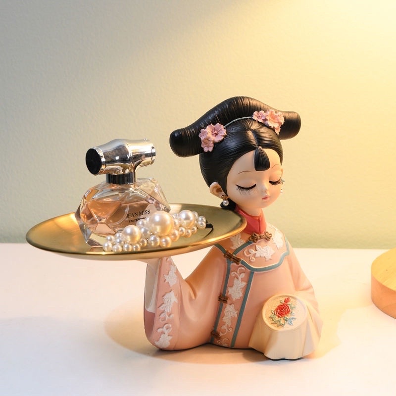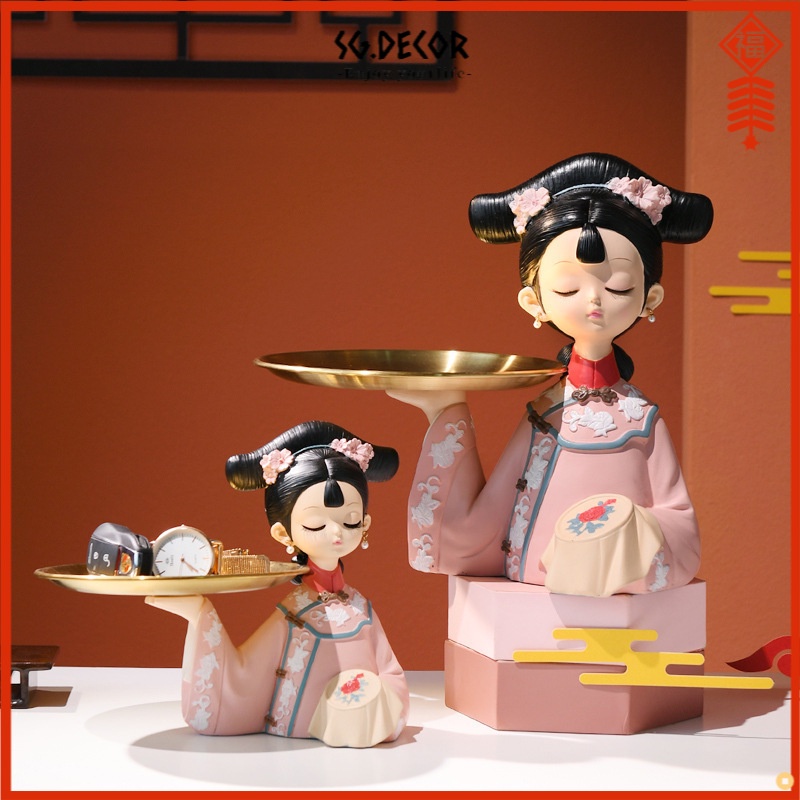 Thông tin sản phẩm: Tượng Cô gái Trung Hoa kèm khay đựng đồ xinh xắn tiện dụngKích thước sản phẩm: cao 22cm