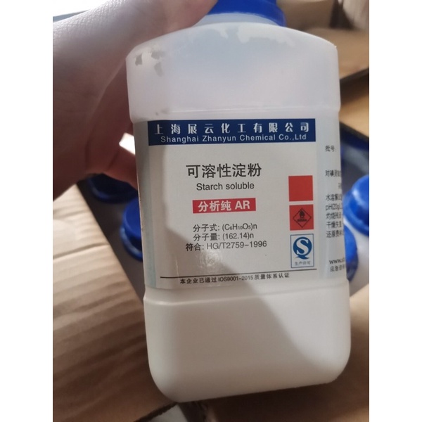 Giới thiệu Tinh bột starch soluble CAS 9005-84-9 (C6H10O5)n lọ 500g hồ tinh bột