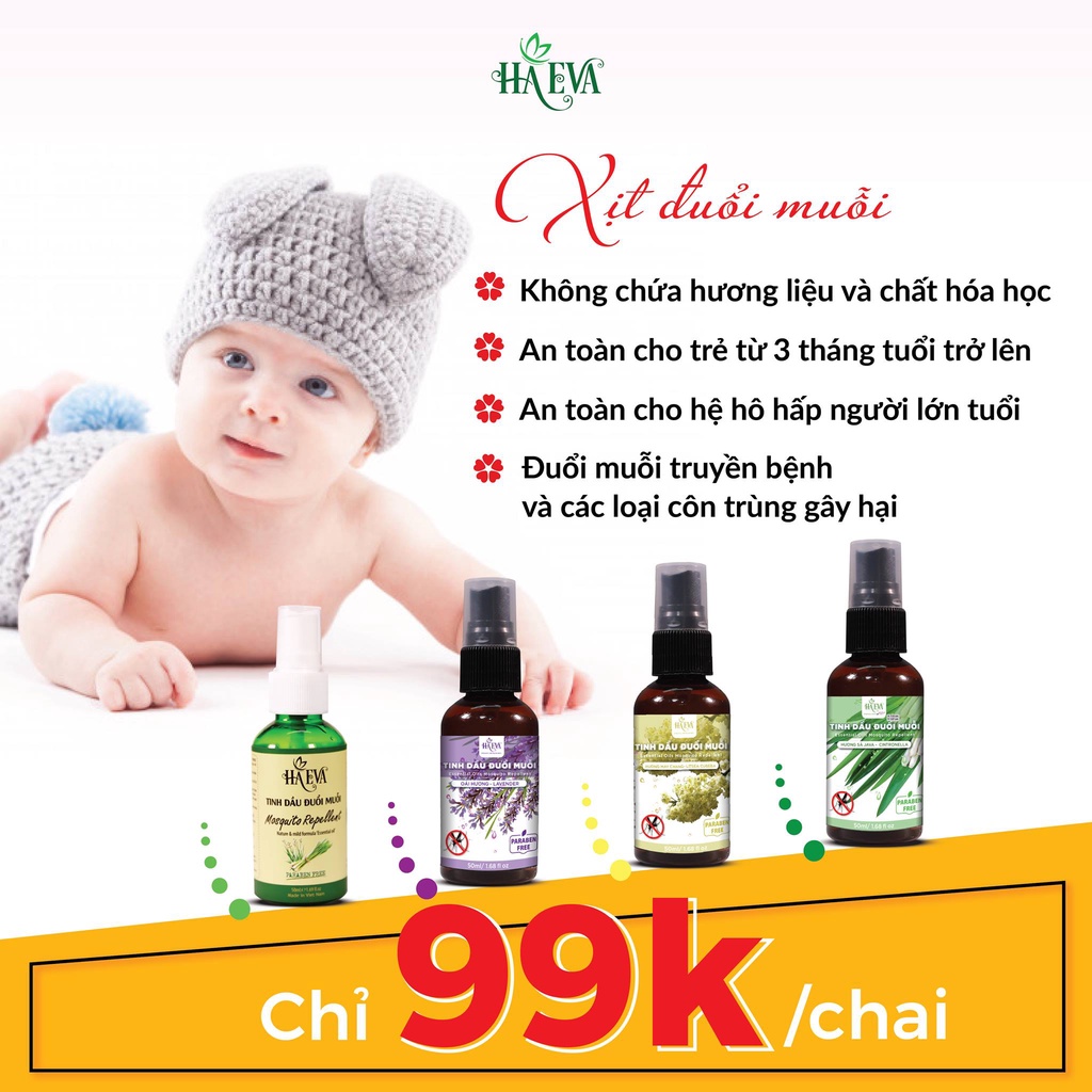 Giới thiệu Tinh dầu đuổi muỗi Sả Chanh Haeva 50ml, 100% Thiên Nhiên, đuỗi muỗi hiệu quả, khử mùi hôi, kháng khuẩn không gian