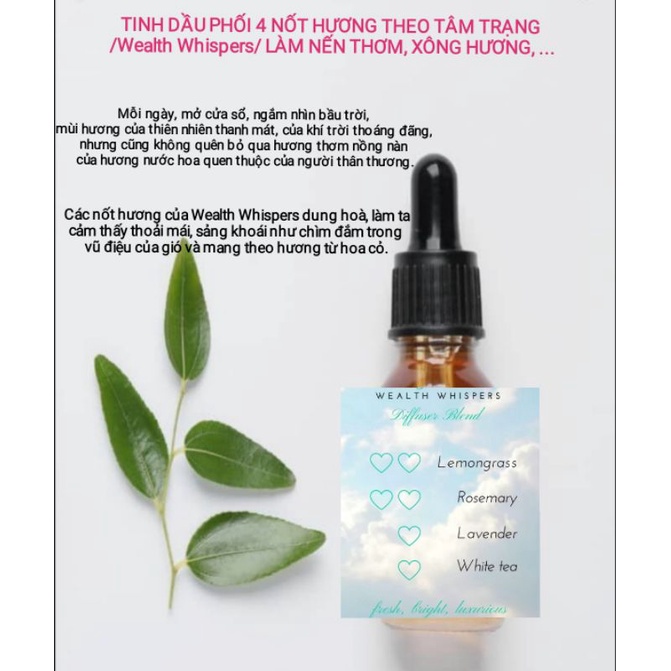 Review Mùi Hương Tinh dầu theo từng tâm trạng:- Tinh dầu phối hương mang tên gọi Wealth Whispers với 4 nốt hương: