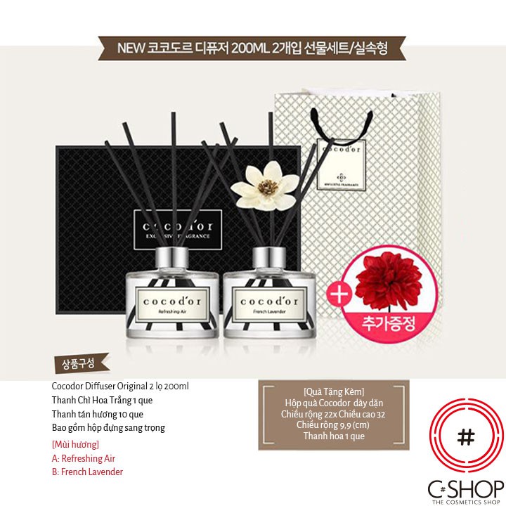 Nhà cửa & Đời sống > Chất khử mùi, làm thơm nhà > Khác || Tinh Dầu Tán Hương COCOD'OR GIFT SET 400ml_Mỹ phẩm Hàn Quốc chính hãngCòn hàng
