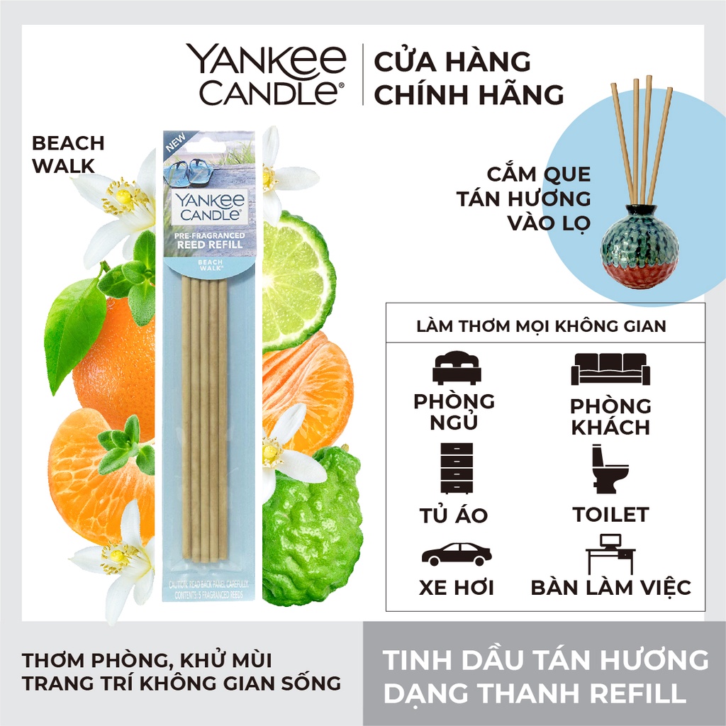Nhà cửa & Đời sống > Trang trí nhà cửa > Nến & đồ đựng nến || Tinh dầu tán hương dạng thanh Yankee Candle (refill) - Beach Walk (gồm 5 thanh tán hương, không kèm lọ)Còn hàng