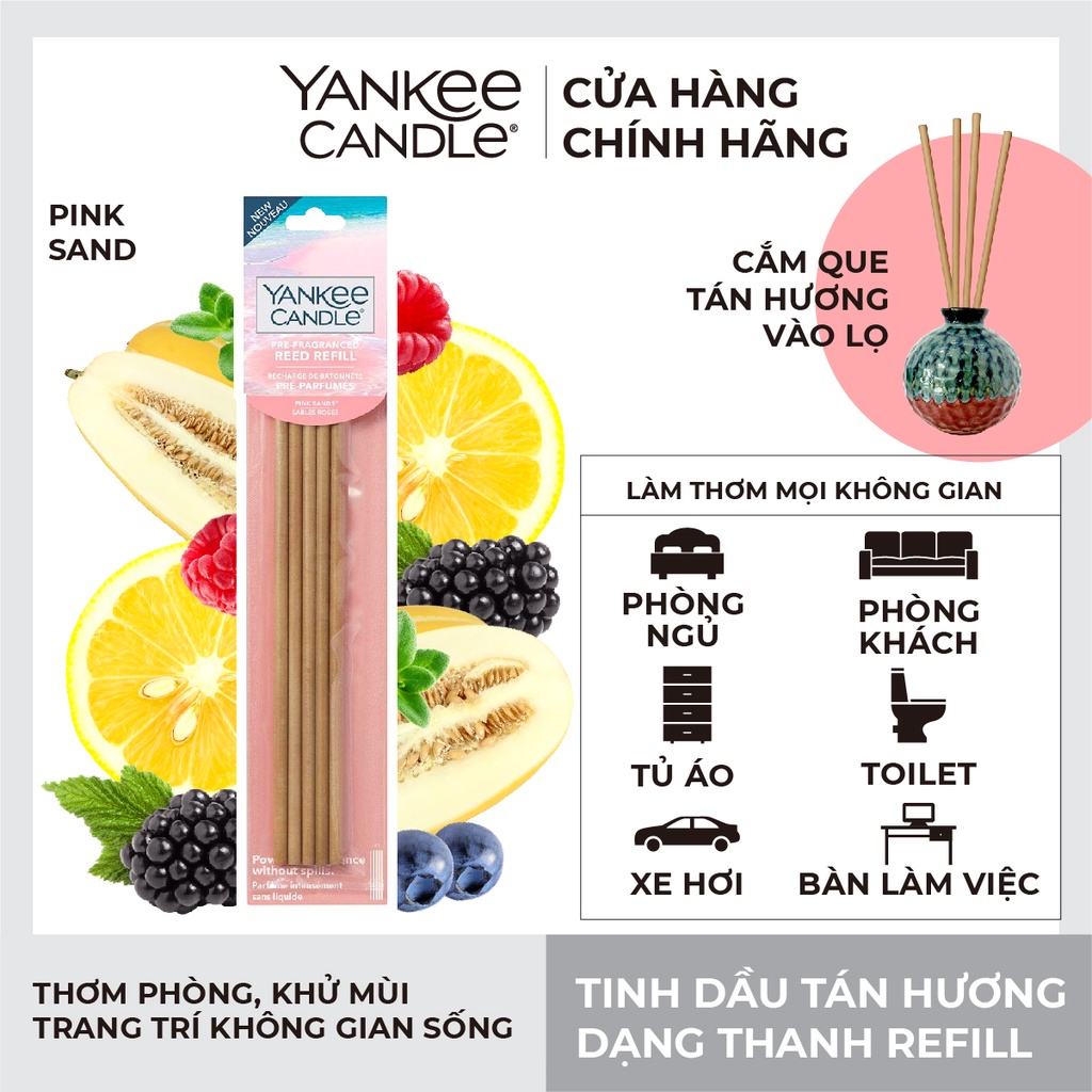 Nhà cửa & Đời sống > Trang trí nhà cửa > Nến & đồ đựng nến || Tinh dầu tán hương dạng thanh Yankee Candle (refill) - Pink Sands (gồm 5 thanh tán hương, không kèm lọ)Còn hàng