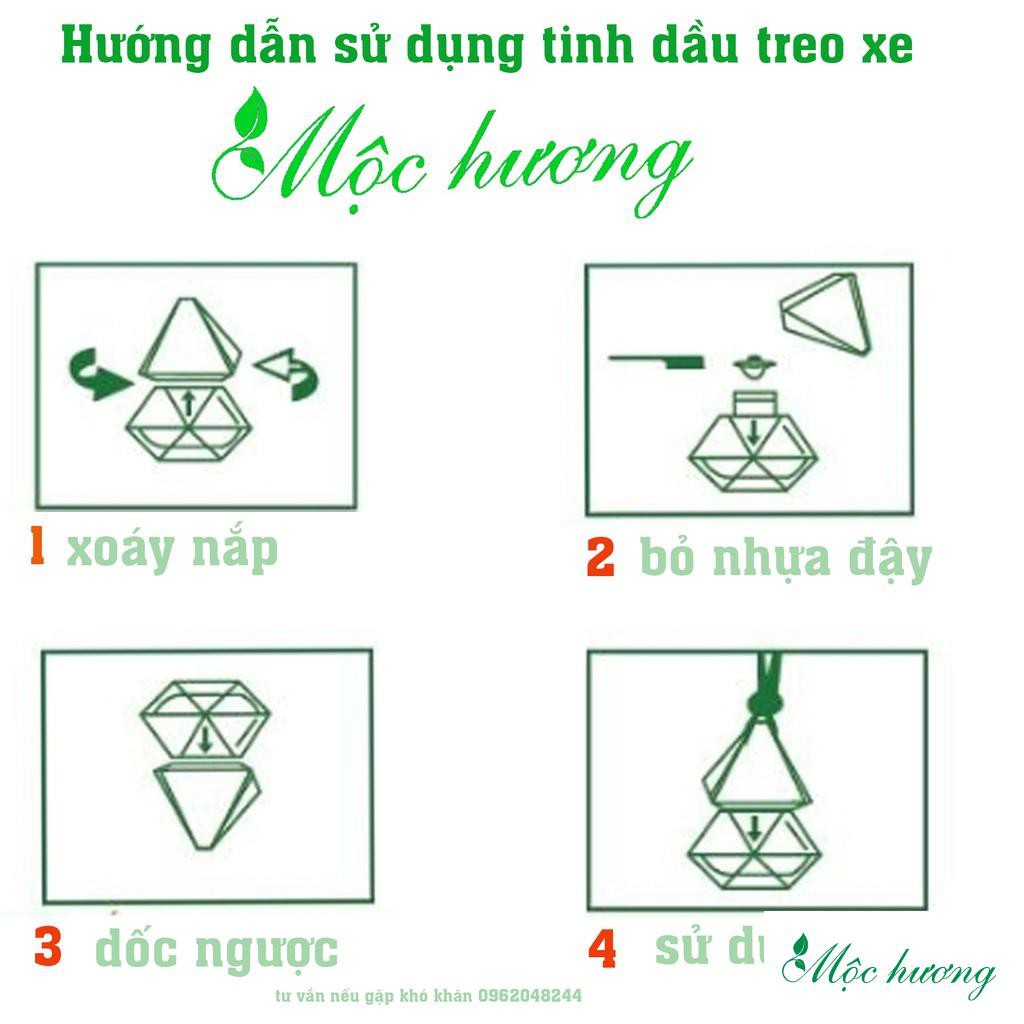 🍀🍀 GIÁ THÀNH ĐI ĐÔI VỚI CHẤT LƯỢNG - XIN QUÝ KHÁCH ĐỪNG ĐÁNH ĐỒNG VỚI NHỮNG SẢN PHẨM TỰ CHIẾT XUẤT CÓ GIÁ THẤP - KHÔNG THƯƠNG HIỆU TRÔI NỔI TRÊN THỊ TRƯỜNG Ạ!🍀🍀🍀🍀Tinh dầu treo xe Mộc Hương loại cao cấp, được nhập khẩu từ các nguồn nguyên liệu tốt nhất Thế Giới: Pháp (hoa hồng, hoa lưu ly, lavender...) Ấn Độ (sả java, bạc hà,...) hoặc các nông trường nguyên liệu chất lượng cao của Mộc Nhiên tại Việt Nam, mang lại chất lượng tinh dầu ổn định, hoàn toàn không có hóa chất hoặc tạp chất còn dư có hại cho sức khỏe người dùng.