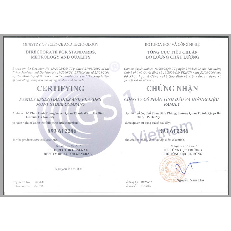 - Đơn vị chịu trách nhiệm: Công ty Cổ phần Tinh dầu và Hương liệu FAMILY