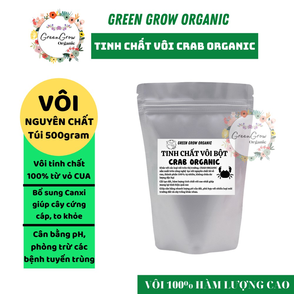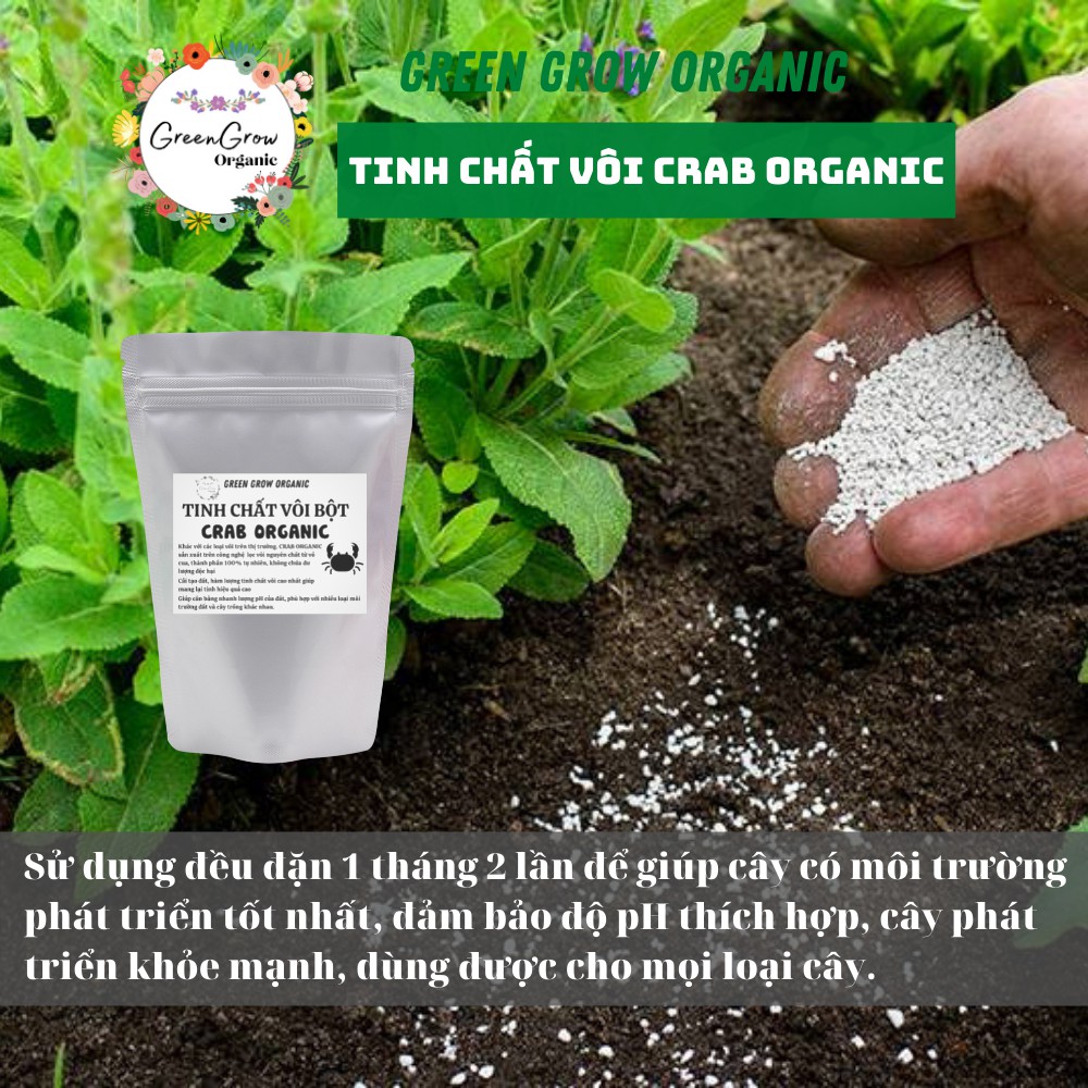 --- SHOP GREEN GROW – PHÂN BÓN VI SINH CHO CÁC LOẠI HOA KIỂNG ---Tinh vôi bột nông nghiệp nhập khẩu 500gr Crab Organic phân bón canxi chiết xuất từ vỏ cua biển MS135 GREEN GROW