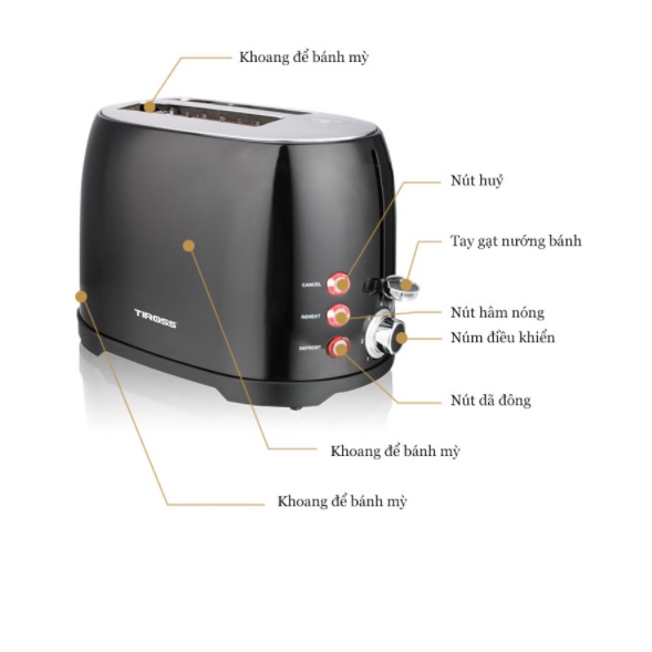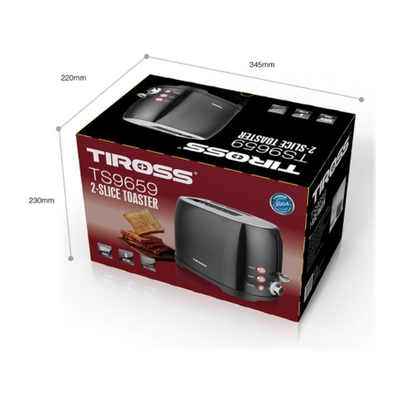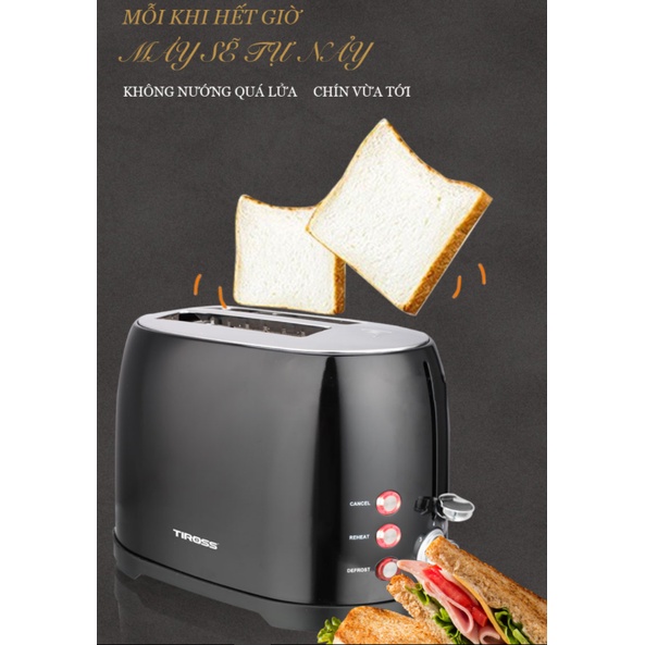 - Máy nướng bánh mỳ TIROSS TS9659 được thiết kế hiện đại, dễ dàng sử dụng và vô cùng tiện dụng.