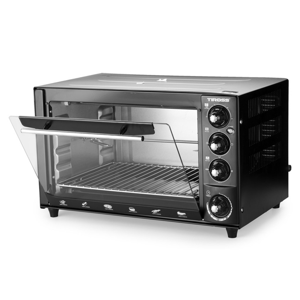 - Tiross TS-961 có nhiều chức năng nướng như nướng trên, dưới hoặc cả hai, nướng xiên, nướng đối lưu... Bạn có thể tùy chỉnh chế độ nướng phù hợp với thực phẩm cần chế biến.