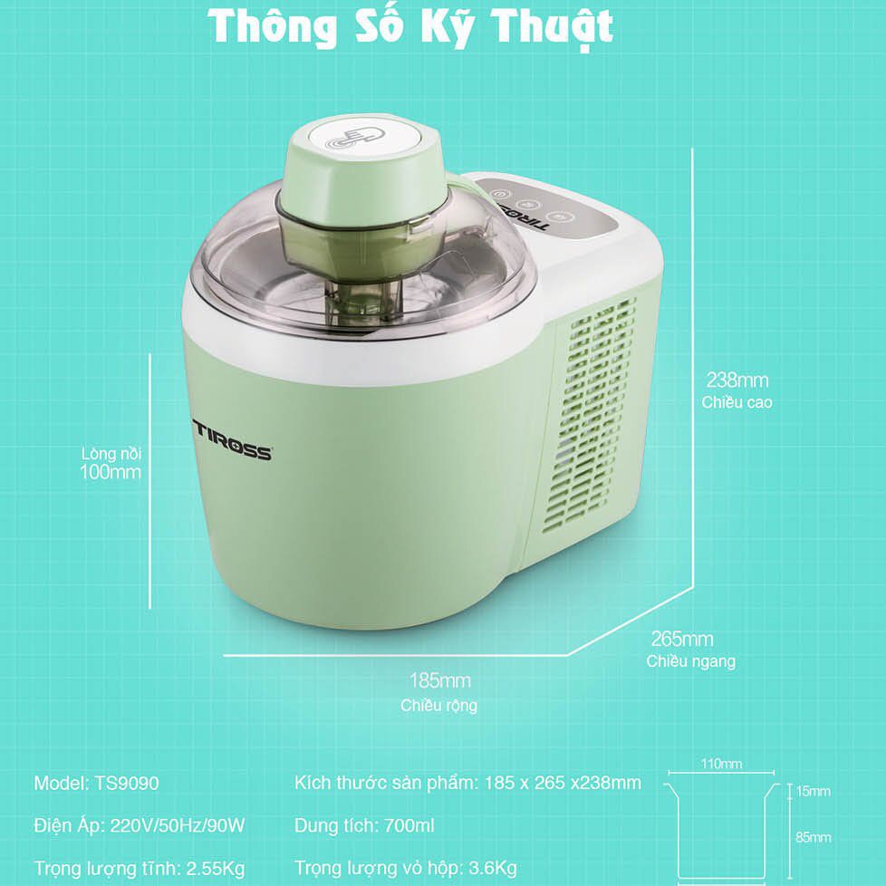 [Tiross123] Máy làm kem tươi gia đình Tiross TS9090,Sản Phẩm Chính Hãng, Bảo Hành 12 Tháng