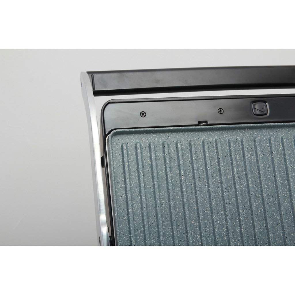 Mặt bếp tráng lớp chống dính bằng công nghệ stone marble, khi nướng thực phẩm không bị dính và dễ dàng vệ sinh sản phẩm, có thể dùng miếng vải mềm để vệ sinh bếp nướng.