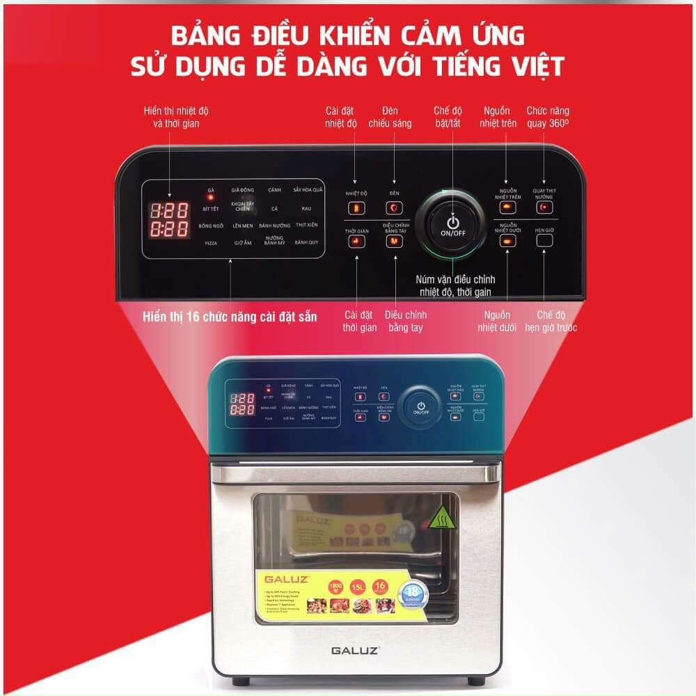 Thiết Bị Điện Gia Dụng > Đồ gia dụng nhà bếp > Nồi chiên không dầu || [tiross123] Nồi chiên không dầu Galuz GLA 1518, dung tích 15l, 16 chương trình nấu tự động, bảo hành chính hãng 18 thánCòn hàng